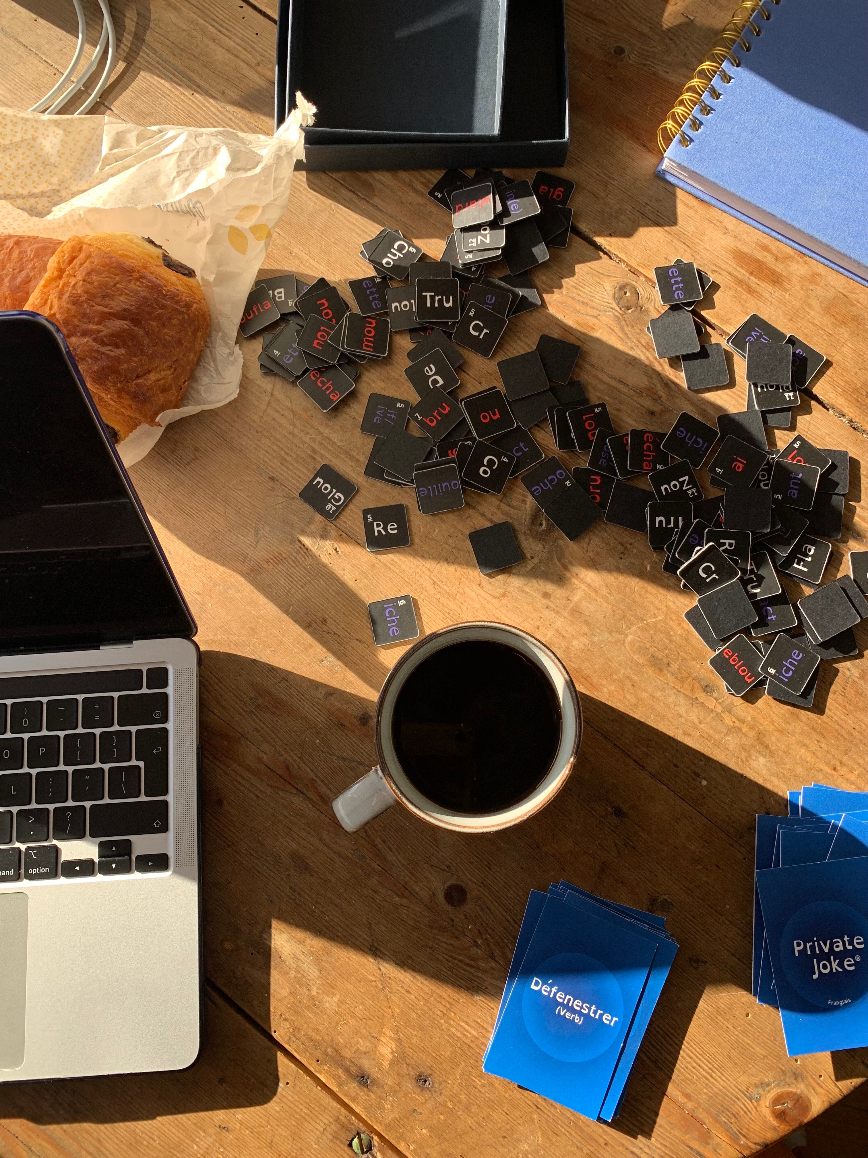 Private Joke ® turns language into play. Teams invent their own words, explore creativity, and co-create a shared vocabulary that strengthens communication, collaboration, and team culture — all while having a blast.